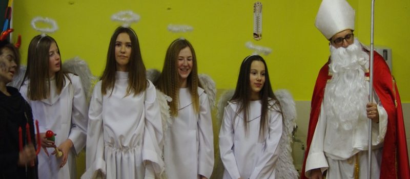 Šiesteho decembra nebolo treba deti nútiť skoro vstať, do školy sa ponáhľať. Prečo? Lebo mal prísť Mikuláš. A veruže aj prišiel. Navštívil všetky triedy, nezabudol ani na telocvičňu. Každého prekvapil malilinkou sladkosťou. Žiaci z neho mali veľkú radosť. Mávali mu, potriasali rukou. Srdečne ho privítali, zarecitovali báseň... Vládla dobrá nálada. Postarali sa o ňu aj anjeli a čertíci, ktorí