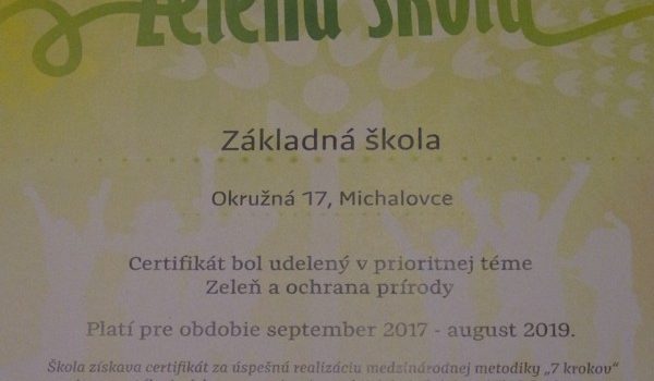Získali sme certifikát Zelenej školy